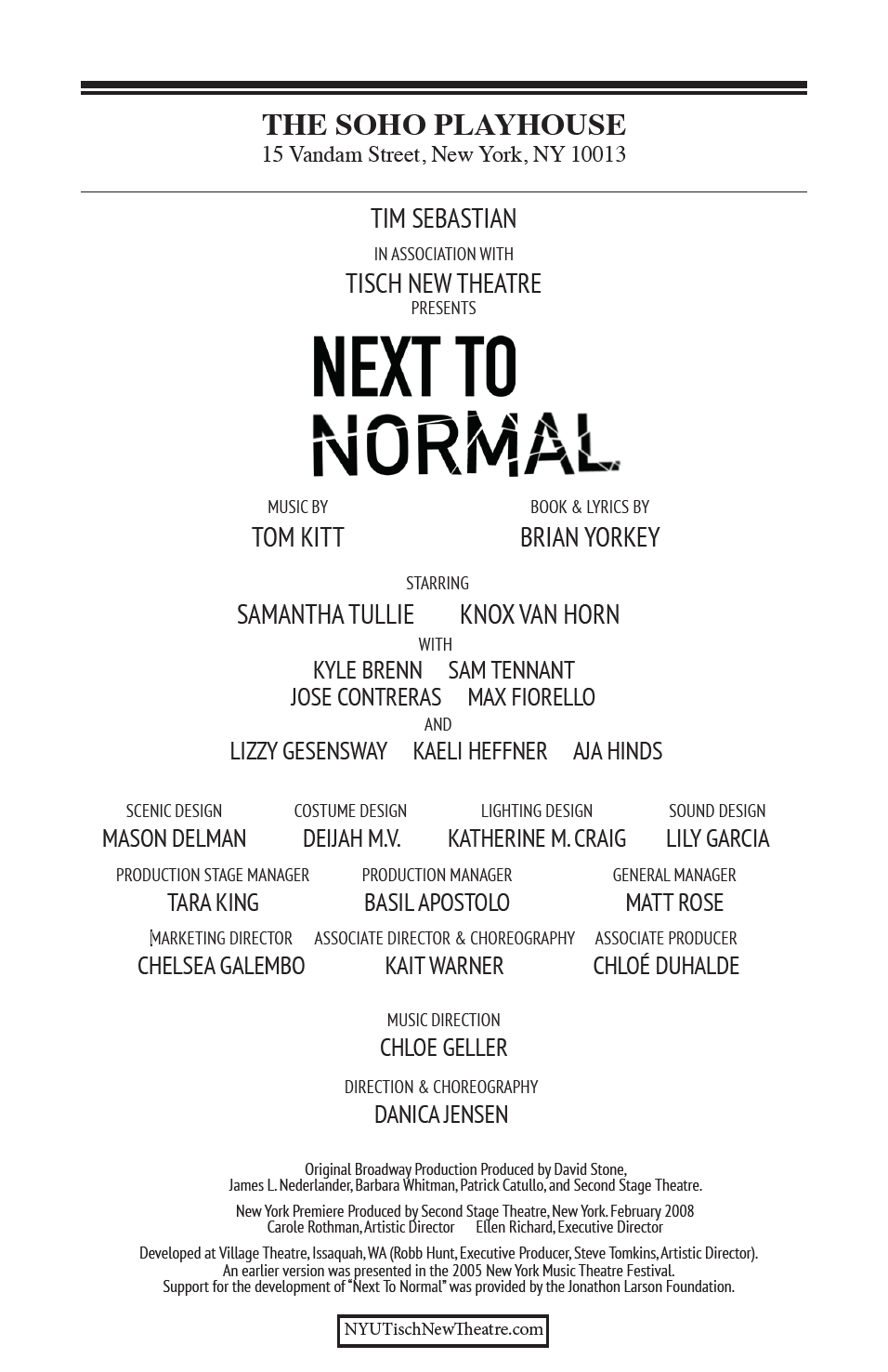 "VIEWERS WHO GO TO SEE ‘NEXT TO NORMAL’ MAY FORGET THAT THEY ARE WATCHING AN ENTIRELY STUDENT-RUN SHOW” –WASHINGTON SQUARE NEWS